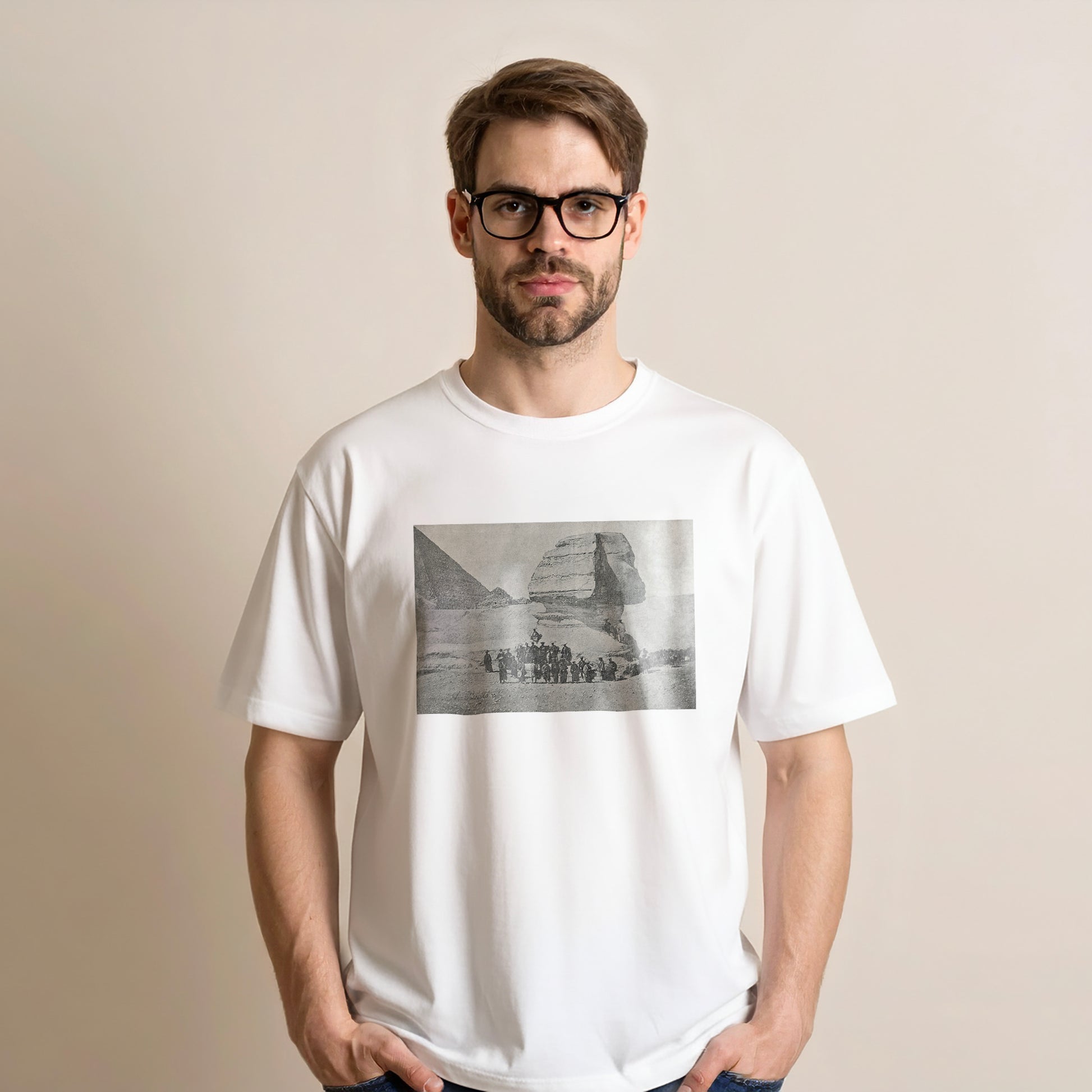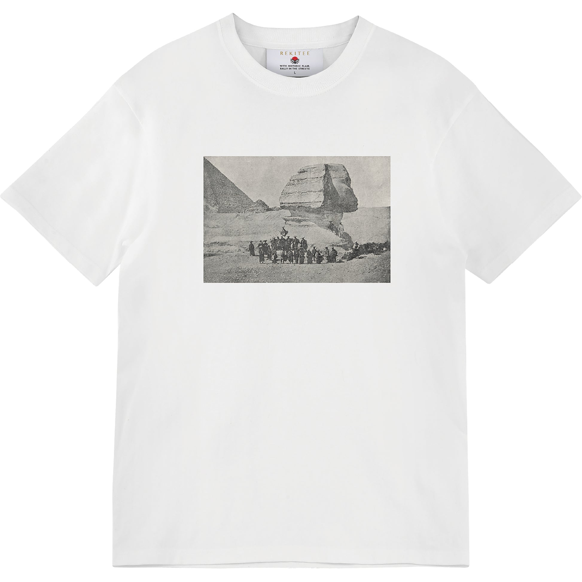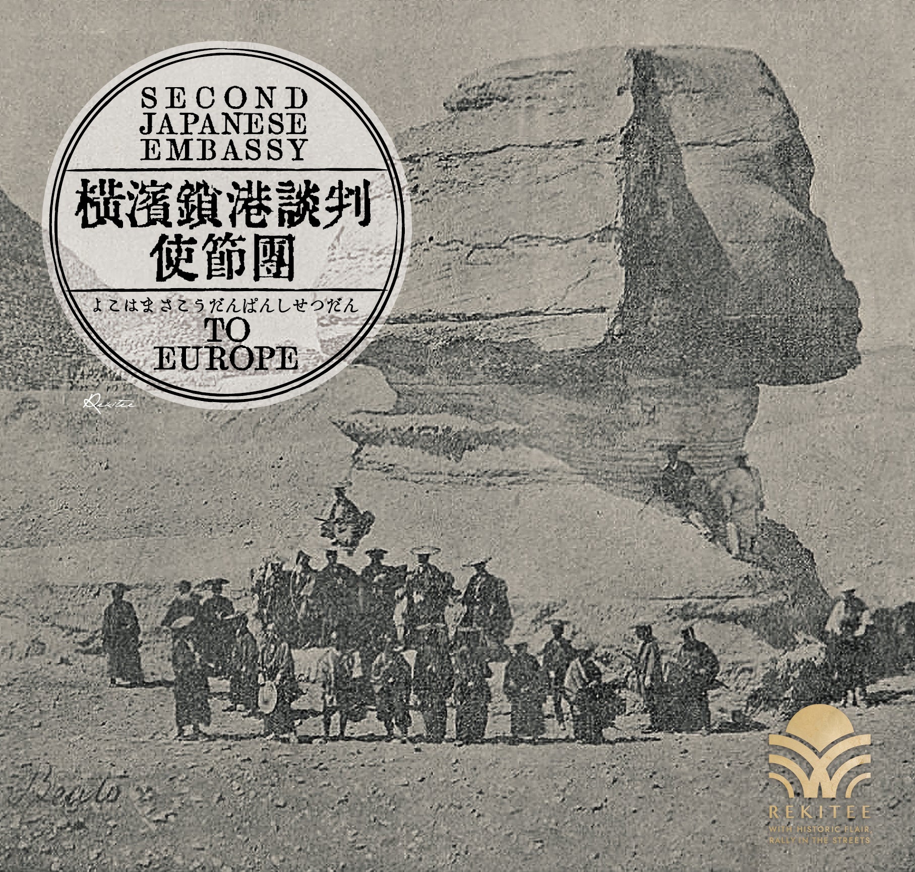 In 1864, the Tokugawa Shogunate dispatched a mission to France to negotiate the closing of the port of Yokohama, which had been forced to open by Western countries. The mission left on a French warship, stopping at Shanghai and India along the way, traveled from Suez to Cairo overland, and crossed the Mediterranean to a French port. This photograph was taken en route to Cairo, showing the Sphinx and Pyramids of Giza in the background.